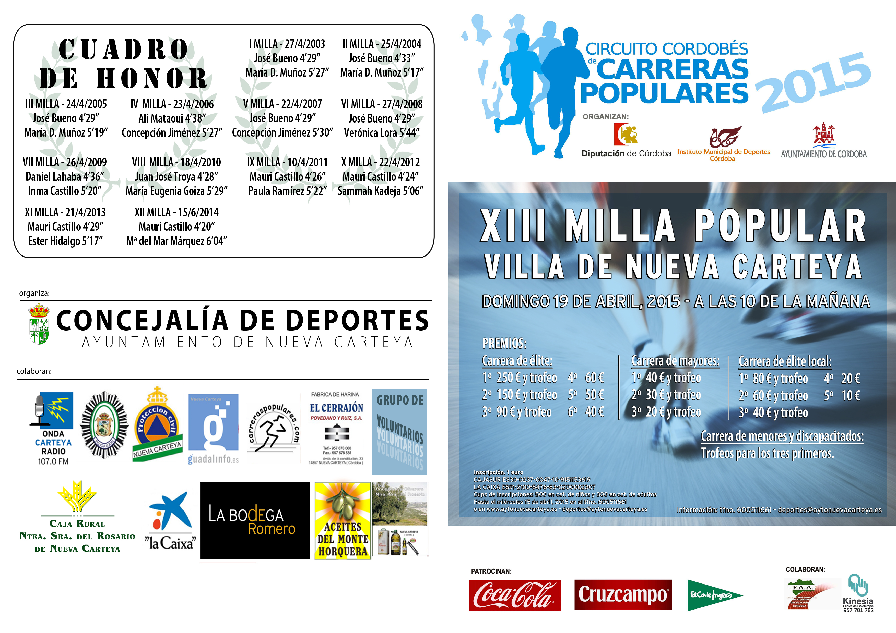 . CARRERA: XIII.-MILLA NUEVA CARTEYA FECHA: DOMINGO 19 DE ABRIL 2015 HORA: 10’ 00 HORAS LUGAR: NUEVA CARTEYA ( Córdoba) CORREDORES: 500 DISTANCIA: DISTIANTAS CLUB AT .LUCENA TRIATLON Y MO…