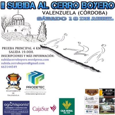 . CARRERA: II.-CARRERA SUBIDA AL CERRO BOYERO DE VALENZUELA FECHA: SABADO 18 DE ABRIL 2015 HORA: 18’00 HORAS LUGAR: VALENZUELA ( Córdoba) CORREDORES: 200 DISTANCIA: DISTINTAS CLUB AT .LUCENA PUESTO…