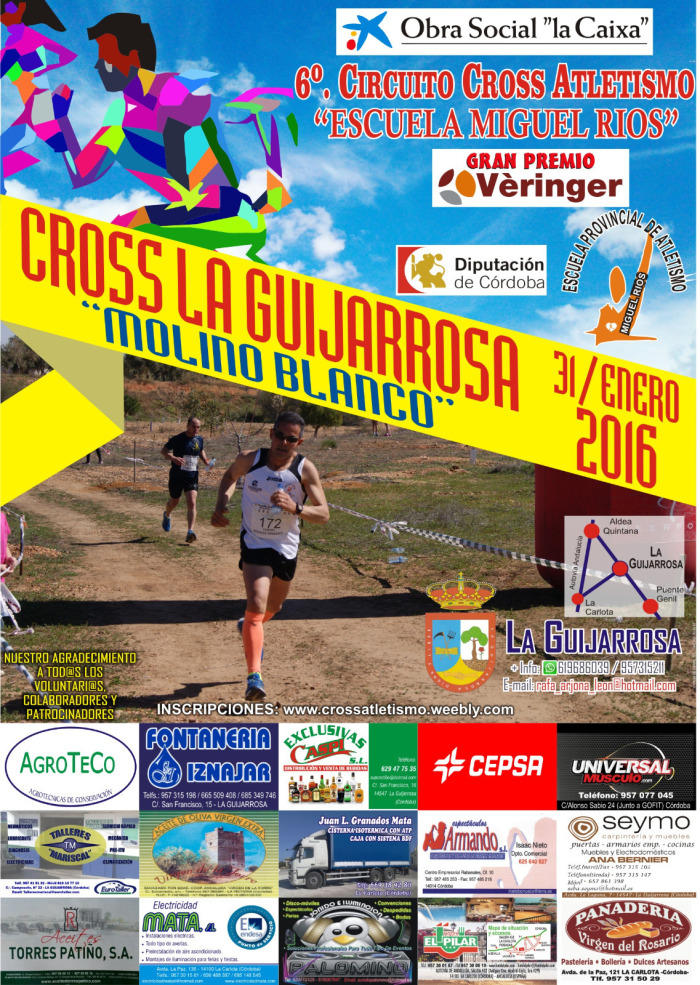 . CARRERA: 6º CIRCUITO CROSS ATLETISMO MIGUEL RIOS FECHA: DOMINGO 31 DE ENERO 2016 HORA: 13’15 HORAS LUGAR: LA GUIJARROSA ( Córdoba) CORREDORES: 60 DISTANCIA: DISSTINTAS CLUB AT .LUCENA TRIATLON…