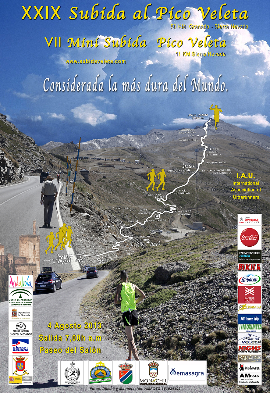 Hoy domingo 4 de Agosto de 2013 se ha disputado en Granada la XXIX Carrera Ultrafondo al Pico Veleta. Se trata de la prueba considerada como más dura del mundo ya que tiene 3.390 metros de altitud y unas 5 horas para ejecutarla.