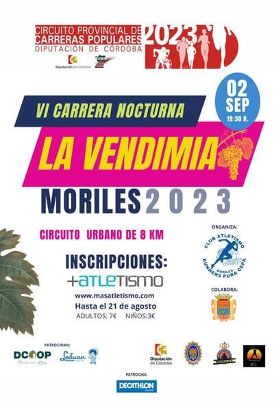 CARRERA: VI – CARRERA POPULAR NOCTURNA LA VENDIMIA MORILES FECHA: SABADO 2 DE SEPBRE 2023 HORA: 19,30 HORAS LUGAR: MORILES ( Córdoba) CORREDORES: 312 DISTANCIA: DISSTINTAS CLUB AT .LUCENA TRIATLON…